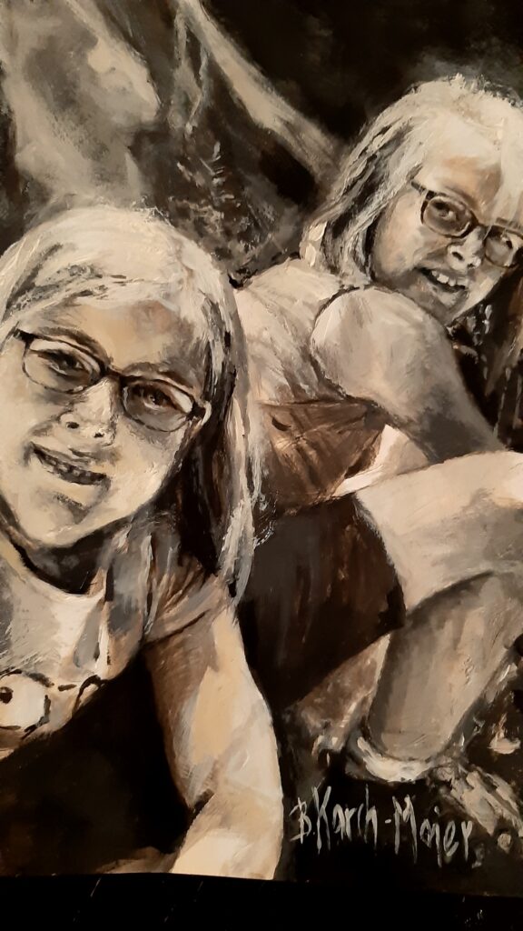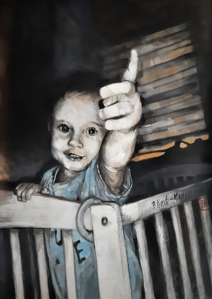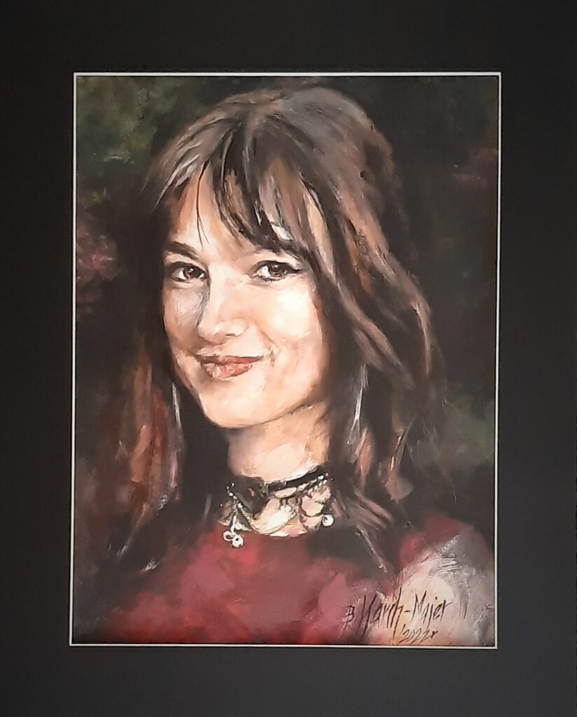 W portretach wykorzystuję technikę olejną i technikę mieszaną, gdzie pierwsze skrzypce odgrywa ołówek, który w połączeniu z akrylem, temperą i tuszem dodaje ekspresji i przestrzeni każdej postaci.