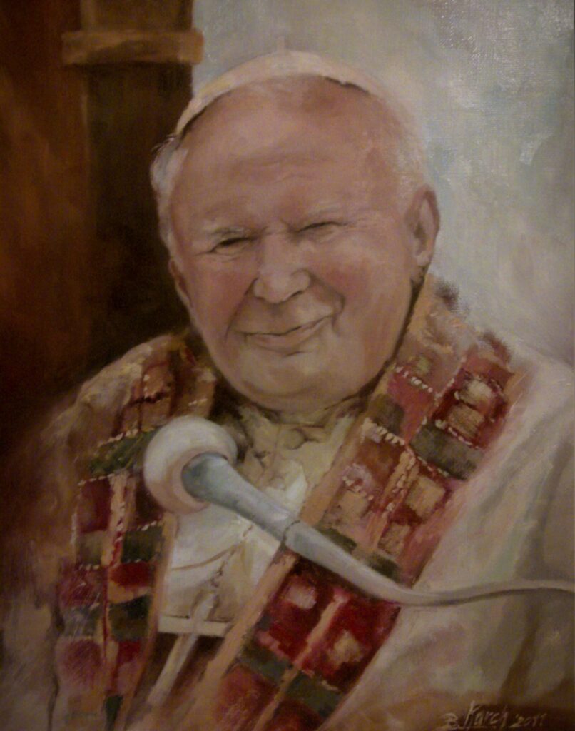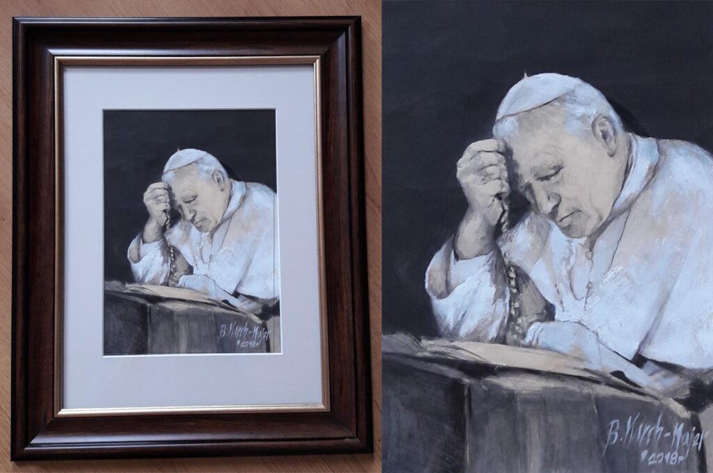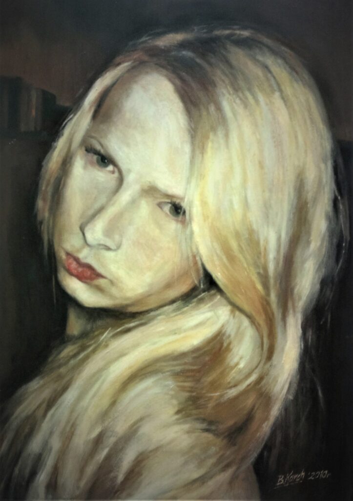 W portrecie bardzo ważnym elementem jest światło, które modeluje i wydobywa cechy charakterystyczne danej postaci. Światło tworzy strukturę i przestrzeń, w której osadzony jest model, dlatego w swoich pracach skupiam się nie tylko na twarzy i rysach portretowanego, ale wchodzę w relację z przestrzenią, w której się znajduje. Wspomniana różnorodność środków pozwala wydobyć głębię i urozmaicić tło.
