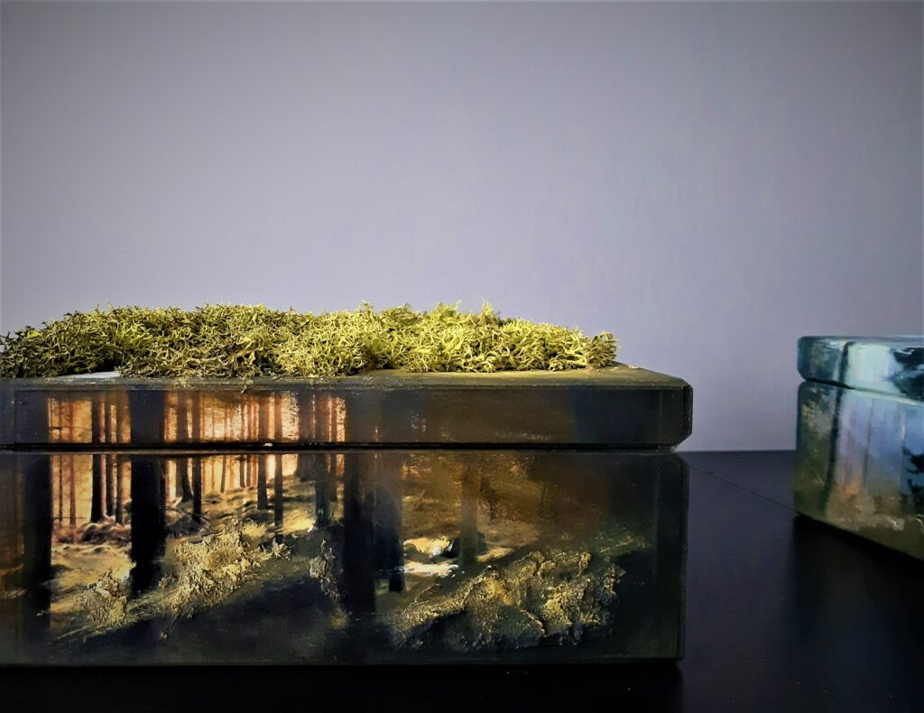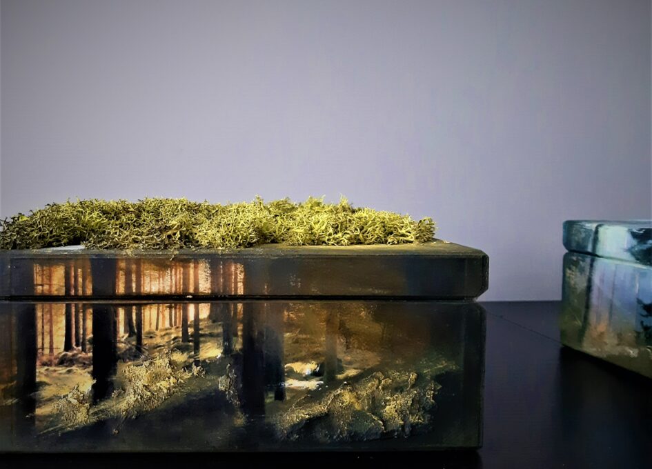 Ręcznie zdobiona skrzynka jest idealnym rozwiązaniem dla osób poszukujących oryginalnego prezentu, a także przedmiotu noszącego znamiona sztuki. Połączenie kilku artystycznych technik pozwala na stworzenie czegoś nietuzinkowego. Coś oczywistego staje się nieoczywiste. Każda strona przedmiotu może stanowić odrębny projekt, jak również może tworzyć całość. Każdy projekt jest poprzedzony konsultacjami i traktowany indywidualnie w taki sposób, aby efekt końcowy był nie tylko techniką zdobienia, ale by poprzez wykorzystanie elementów przestrzennych, malarskich, niuansów kolorystycznych stał się nośnikiem sztuki cieszącym oko odbiorcy.